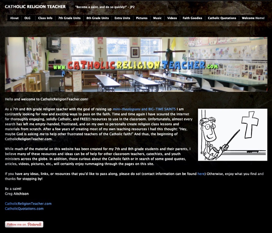 Over time, a number of my students suggested that I should make a website where I could share my lessons with other religion teachers. I laughed this off at first, but their words stuck with me. Thinking back again to God’s challenge (“Greg, maybe I’m calling YOU…”), I decided to give it a shot.