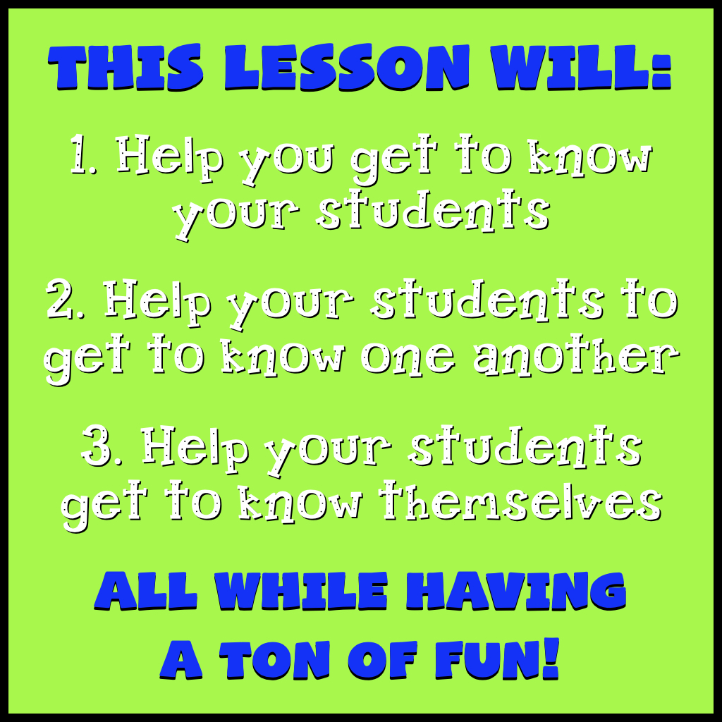 This is a fun “get to know you” two-day lesson plan that can be used any time of the year (at the start of the year, when kids are starting to get distracted before Thanksgiving, Christmas, spring, or summer break, etc.).
