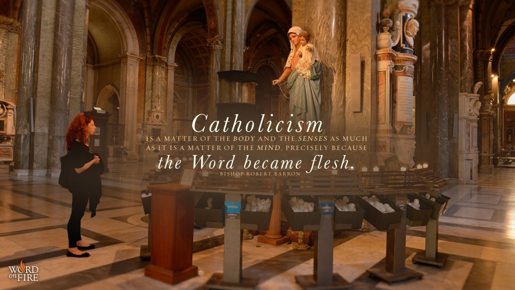 Bishop Robert Barron is an auxiliary bishop of the Archdiocese of Los Angeles. He founded the ministry, Word on Fire, which is an outstanding beacon of The New Evangelization. Bishop Barron has recorded and podcasted over 600 of his Sunday sermons (might I suggest you subscribe via iTunes right now?) and was the creator and host of the extraordinary Catholicism DVD Series. I had the lucky benefit of being a student of his when I was a seminarian at Mundelein Seminary near Chicago (he was one of the best and most exciting professors I’ve ever had!).