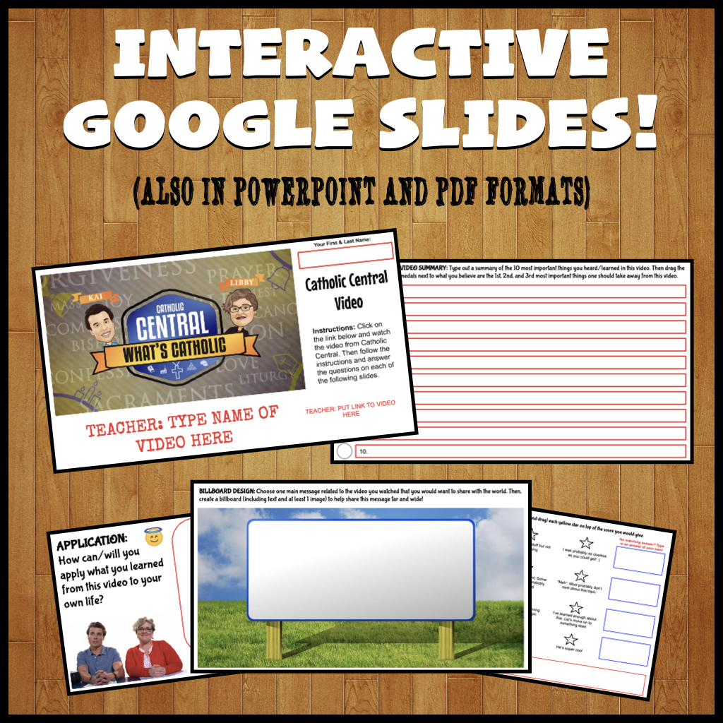 This is a great resource. Kai & Libby, from Catholic Central, are fun, informative and educational about the Catholic faith. I had used their videos previously but this meant making up my own quizzes and activities. Greg has made this a lot easier! The slides and activities are interactive, engaging, and reflective. They help the students to learn and apply their learning to their lives – what more could you ask for? You get 3 different versions of the slides: one teacher directed; one student directed; and one fully editable which means you can mix up the activities and keep it fresh. An awesome resource for both distance and classroom learning. Highly recommend!