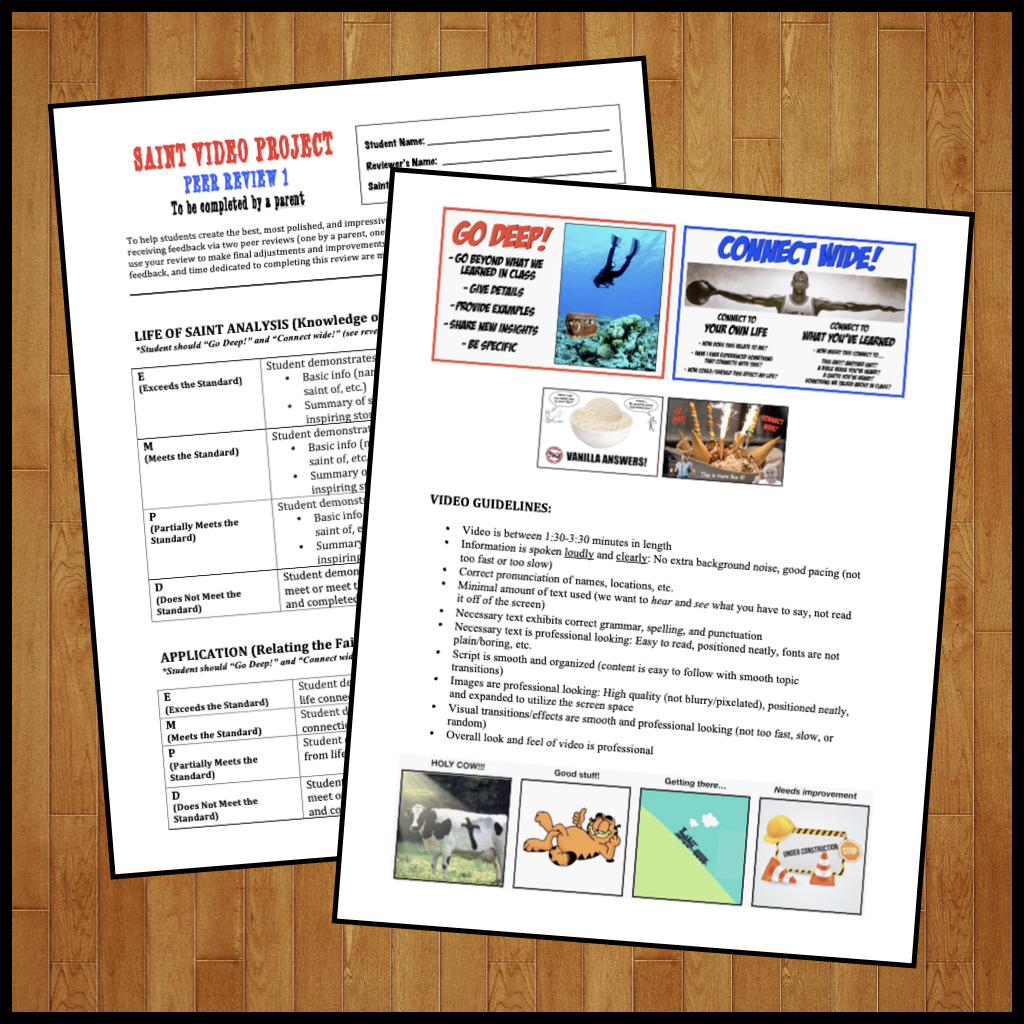 This Saint Video Project comes fully loaded with incredibly detailed instructions, examples, and guides. Originally used as a way to have my students research and share their Confirmation saint, this project can also easily be used in the context of any Religion class.