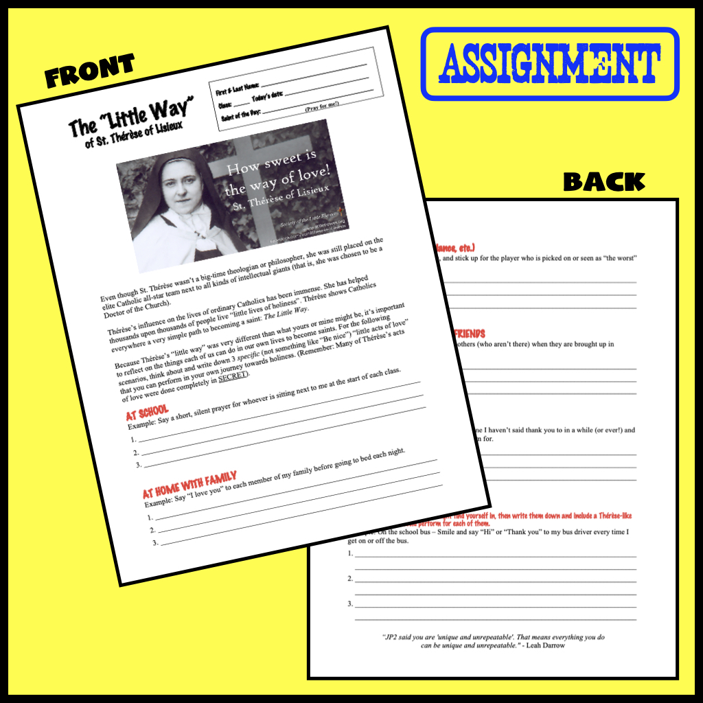 In my own experience, Thérèse has been a game changer for my students. Her “littleness” (normal-ness) resonates with them. After all, Thérèse dealt with wild emotions, doubts, and even bullying (from nuns in her own convent!). And yet she found a path of holiness in “The Little Way” which every person (little kids on up!) can easily apply to their own lives. I hope and pray that your students experience the power of The Little Flower as well!
