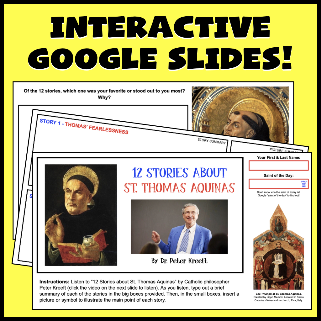Utilizing a short portion of a talk given by the renowned Catholic philosopher Peter Kreeft, these 12 stories about Aquinas will stick with your students and provide springboards for some awesome class discussion.